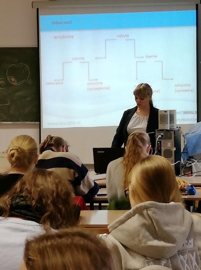 W ciągu 6 godzin omówili problematykę chorób zakaźnych u podstawowych gatunków zwierząt. Lek. wet. Angelika Orlewicz przedstawiła podstawowe zasady immunoprofilaktyki w hodowli koni, psów, kotów i zwierząt futerkowych. Temat dotyczący prowadzenia immunoprofilaktyki w stadach bydła i trzody chlewnej w obszernym wykładzie przybliżyła dr inż. Anna Nienartowicz- Zdrojewska. W ramach prowadzonych zajęć zaprezentowane zostały konkretne programy profilaktyczne możliwe do zastosowania w oparciu o produkty Biovety. Wykładów wysłuchało ok. 60 osób.
