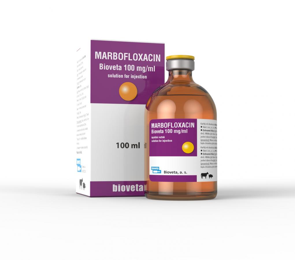 Marbofloxacin Bioveta 100 mg/ml, roztwór do wstrzykiwań – do leczenia chorób zakaźnych układu oddechowego wywołanych drobnoustrojami wrażliwymi na marbofloksacynę (Pasteurella multocida, Mannheimia haemolytica i Mycoplasma bovis) oraz ostrych zapaleń wymienia wywołanych przez Escherichia coli u bydła, a także zespołu PDS (wcześniej MMA) u loch.